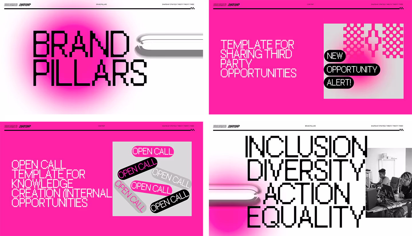 Over a four-year period, Association Shap Shap commissioned us to develop a new visual identity, website, and social media strategy to strengthen its presence and position it as a leading voice at the intersection of culture and social justice. The goal was to build a distinct and recognisable brand that resonates with both public sector organisations and its youth-focused audiences.